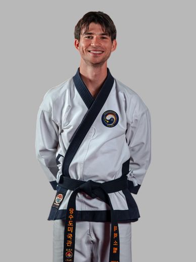 Hello, my name is Jordan, and I hold a 1st degree black belt with 7 years of dedicated training in Tang Soo Do. Through this journey, I've gained invaluable lessons in patience, discipline, and deepened my knowledge in martial arts and self-defense. Tang Soo Do has greatly enriched my physical and mental well-being, instilling in me a strong sense of family, camaraderie, and resilience.